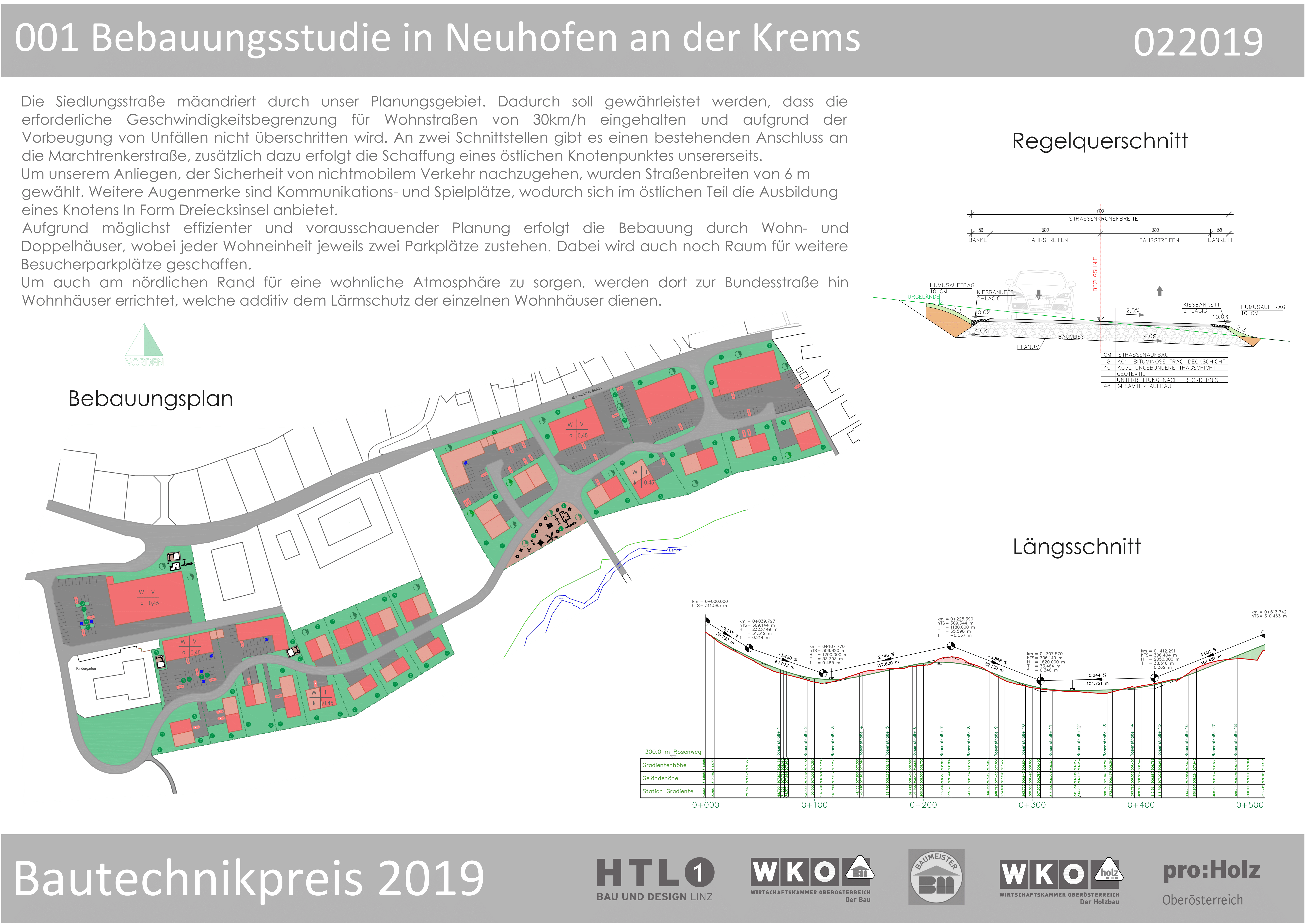 The project proposes a traffic-calmed residential neighborhood with a meandering street layout, integrated social spaces and strategically placed housing that enhances safety and livability. Developed for the Upper Austrian Building Engineering Award 2019 (2nd place) sponsored by the Austrian Federal Economic Chamber.