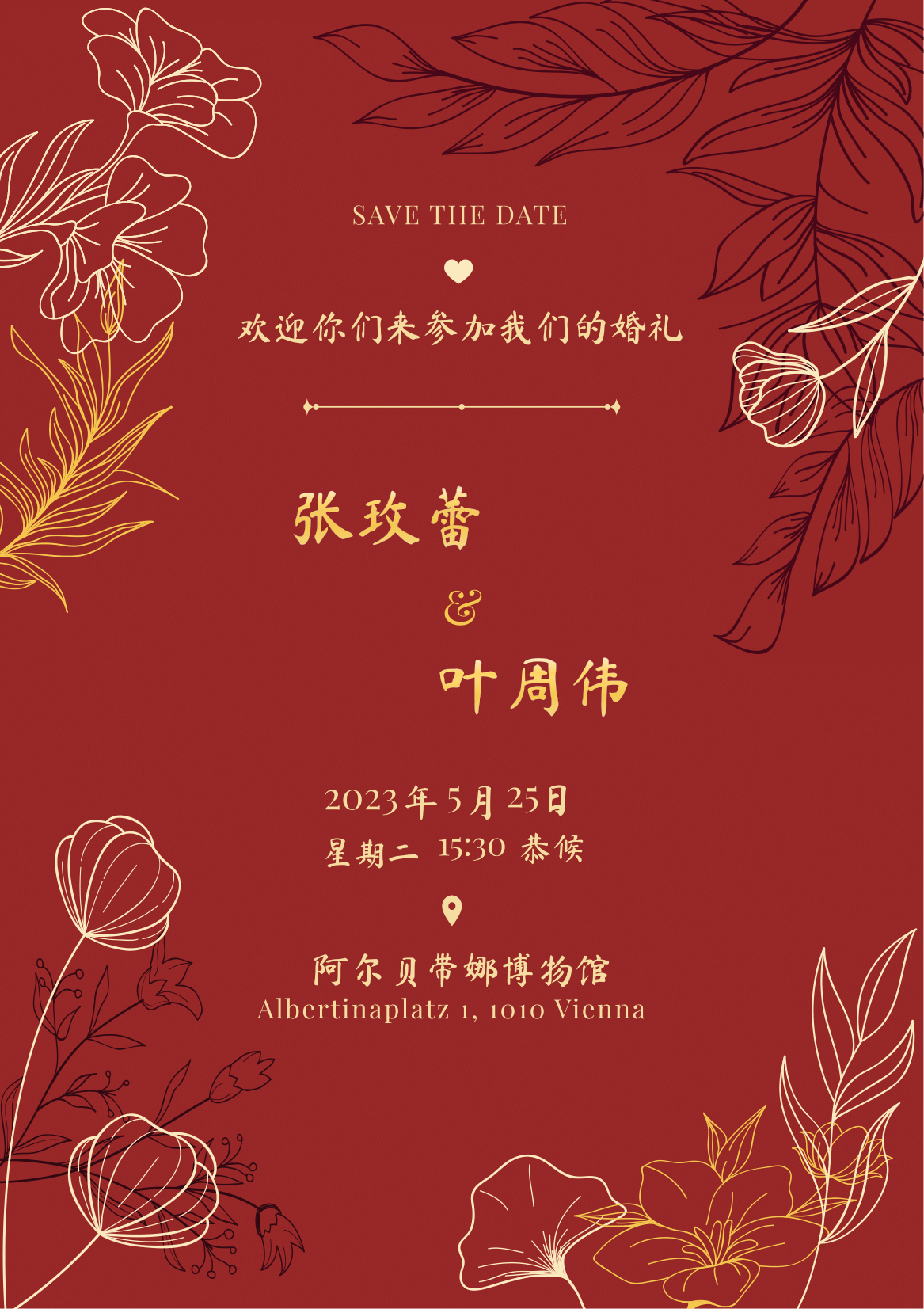 Design of a wedding card invite in a modern chinese style, made using Figma.